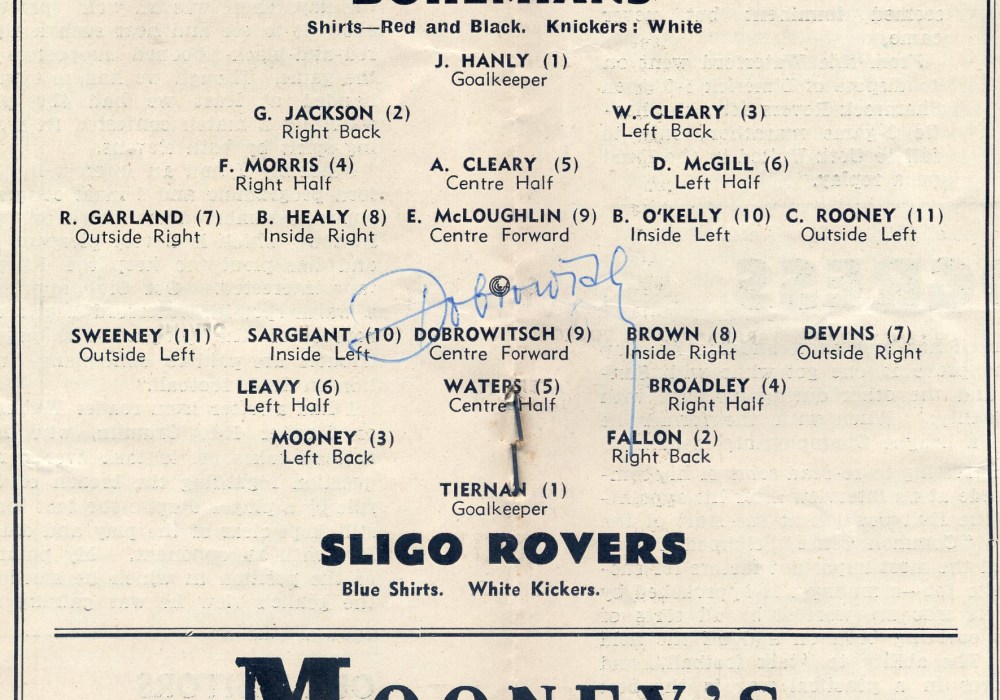 Also signed for Reds were Maurice Cummins and Paddy Lennon two prominent half-backs who both had lined out Cork F.C. Cummins was also talented at lawn-bowling in his native Cork, he would later sign for St. James’s Gate and was part of their side that lifted the FAI Cup in the 1937-38 season. While there was a strong contingent of players from the greater Ringsend area the signing of Cummins and Lennon shows that the club were looking beyond the local, indeed two players were brought over from the Scottish Leagues.