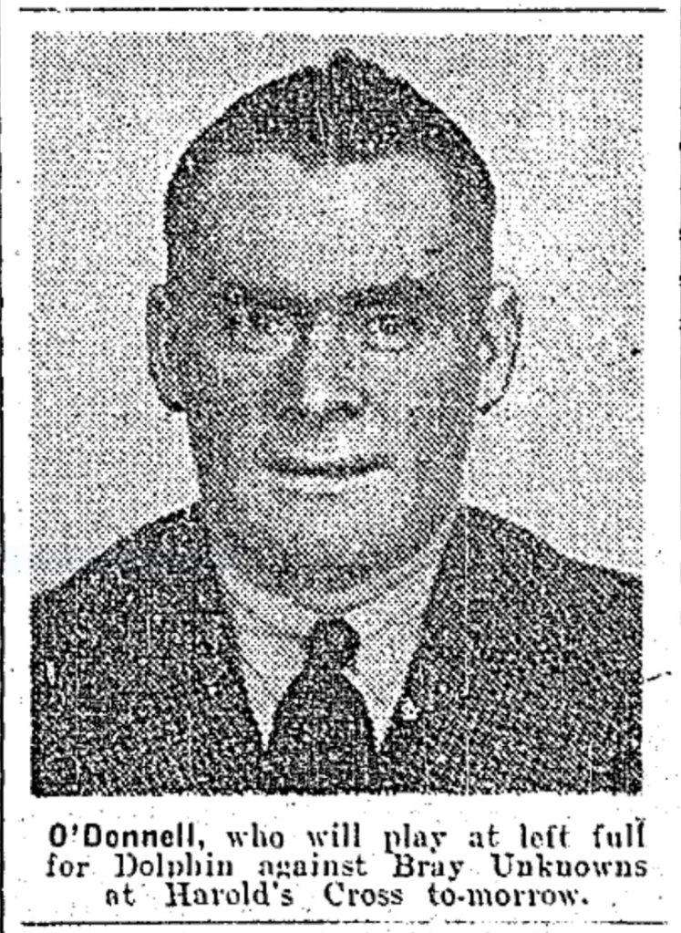 O’Donnell impressed in his first game for Dolphin, a 3-0 win over Cork Bohemians on 26th November 1933, he was praised for his “powerful kicking and positional play” and got on the scoresheet with a penalty after a Cork handball. It is obvious that O’Donnell had impressed not only at the back but with his attacking play and a move to centre-forward, where he had previously played on occasion for Darlington and Everton, was planned for the next game against Shelbourne. This would allow a return to the defence of Dolphin’s international pairing of Larry Doyle and George Lennox. Of course, this wasn’t to be, Jack O’Donnell had pulled yet another one of his “disappearing acts” going missing for both the Shelbourne game and the subsequent match against Bohemians.