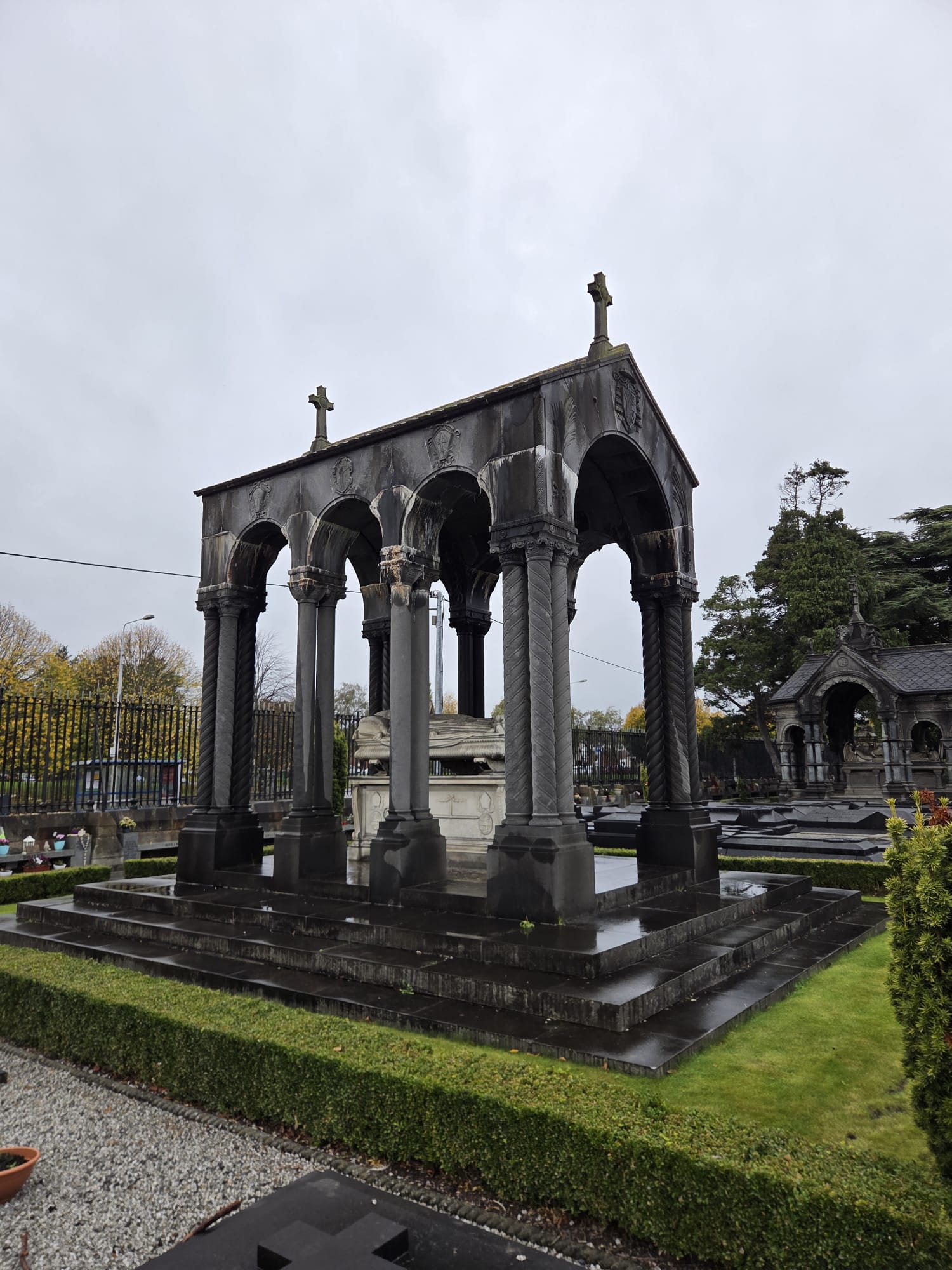 Patrick’s funeral took place on the 11th of April in the Pro-Cathedral, just a couple of minutes walk from his place of work. There was a huge crowd in attendance, estimated by the Evening Herald as numbering as high as two thousand with the funeral described as “one of the largest witnessed in Dublin for a considerable period”. As well as family mourners there was a strong representation of Patrick’s trade union colleagues, they presented a large floral wreath in the shape of a celtic cross. His funeral cortege passed through a Parnell Street which shut all its shops in a sign of mourning and was then met by more of the ITGWU branch members at Cross Guns bridge where they took the coffin from the hearse and carried it to Glasnevin cemetery for burial.