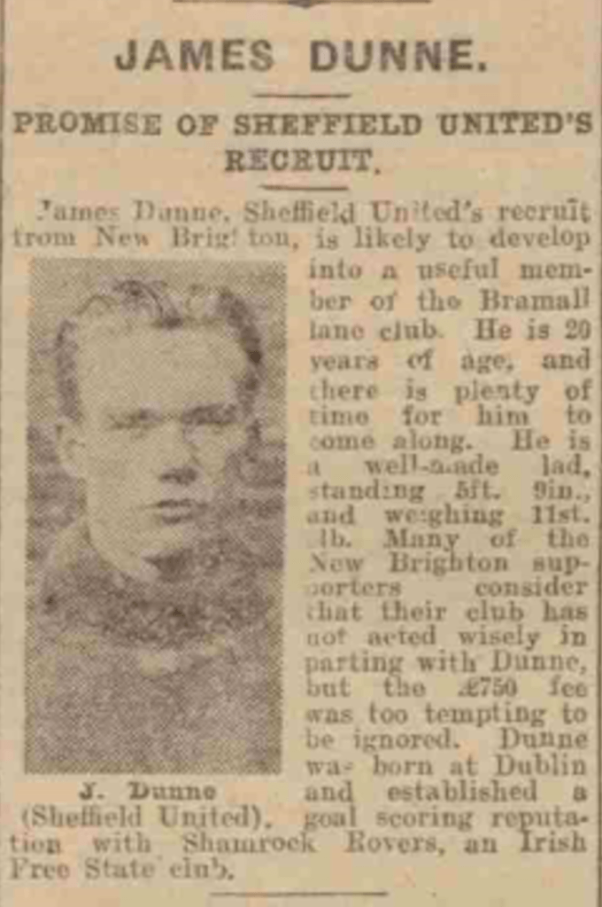 A young Jimmy Dunne after signing for Sheffield United – 1926