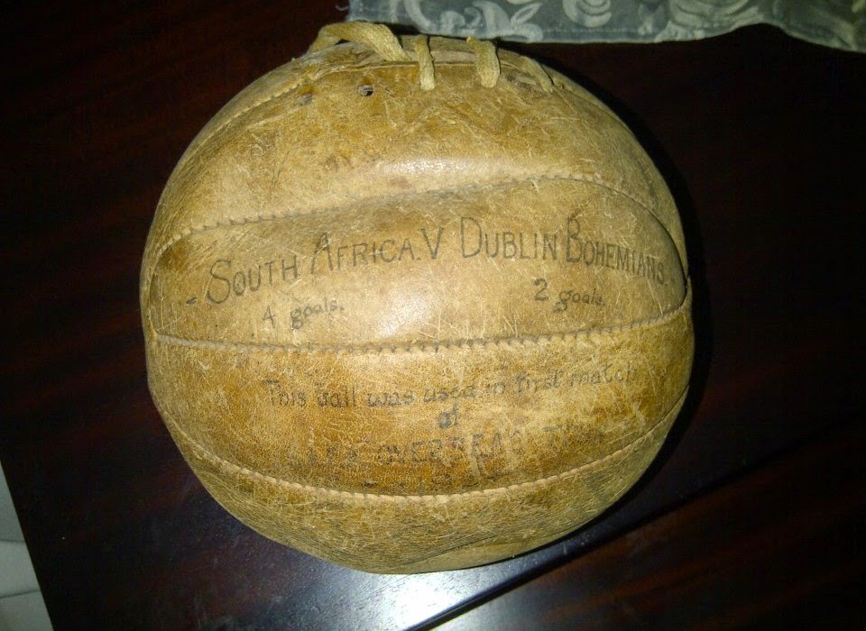 Other prominent games were to follow in 1924, rather appropriately for Billy Bohemians took on the South African national team as the debut game on their European Tour. Billy once again captained Bohs as the South Africans ran out 4-2 winners. Tantalisingly the Pathé news cameras were at the ground that day and recorded some of the footage of the game and the teams posing before the match. As captain it is Billy we see receiving a piece of South African art from his opposite number. Tall, slim and dark-haired Billy would have been around 26 years of age when this footage was shot.